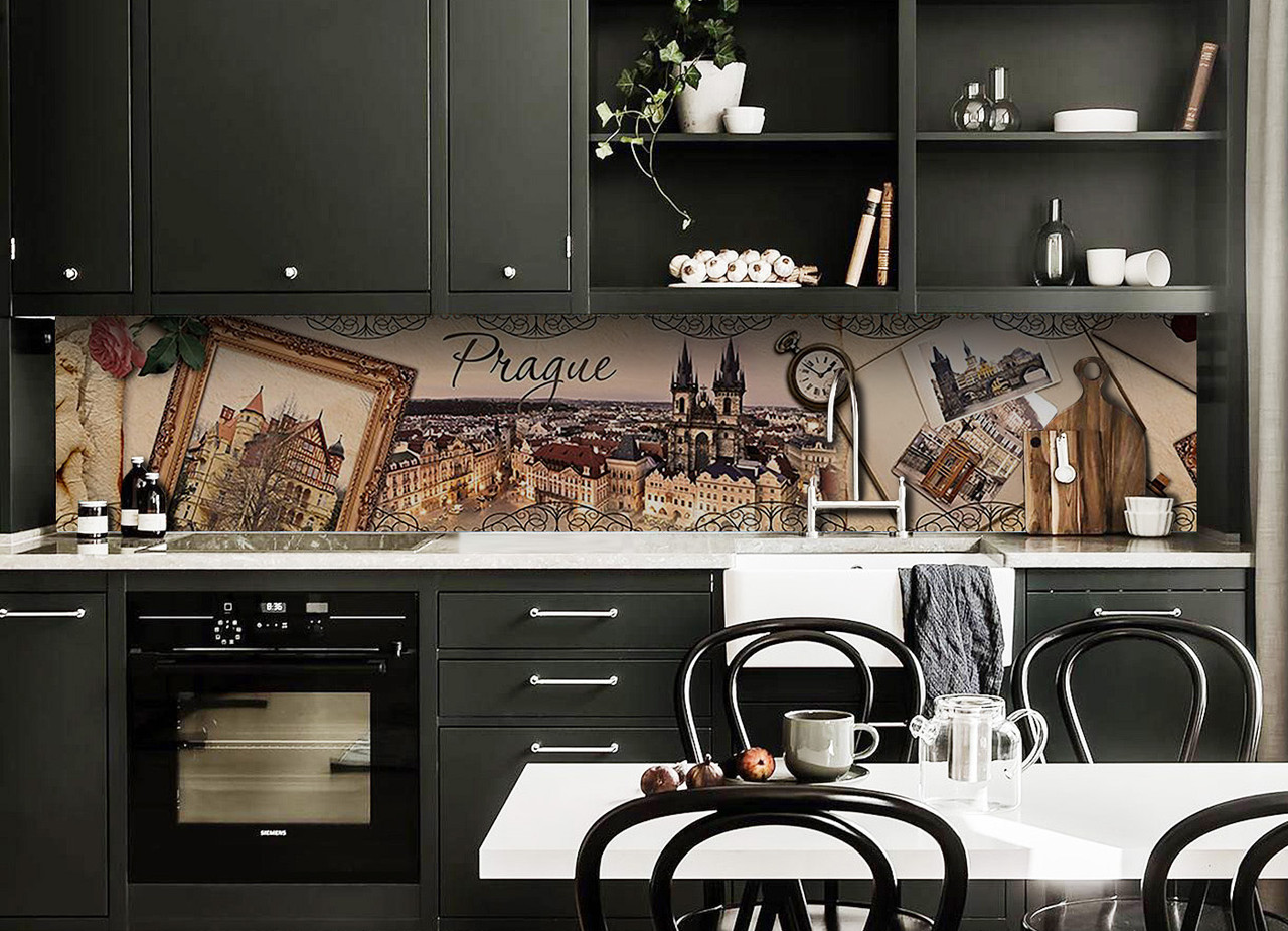 ПодарунокКухонний фартух Прага (скиналі для кухні наклейка ПВХ) Вінтаж Старовинне місто Коричневий 600*2000 мм